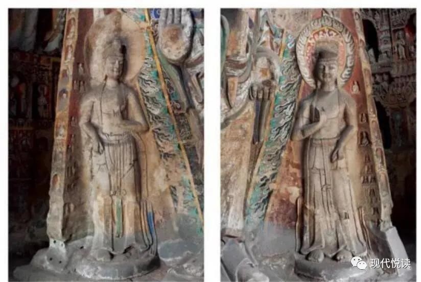第十一窟中心塔柱南面左右胁侍菩萨