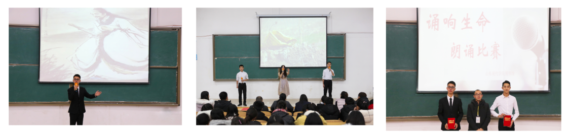 为了弘扬我校学子读书精神,构建书香校园,活跃学院文化氛围,图书馆于2019年11月28日下午,在科研楼102举办了以“展青春风采,颂生命乐章”为主题的第三届颂响生命读书朗诵大赛总决赛。