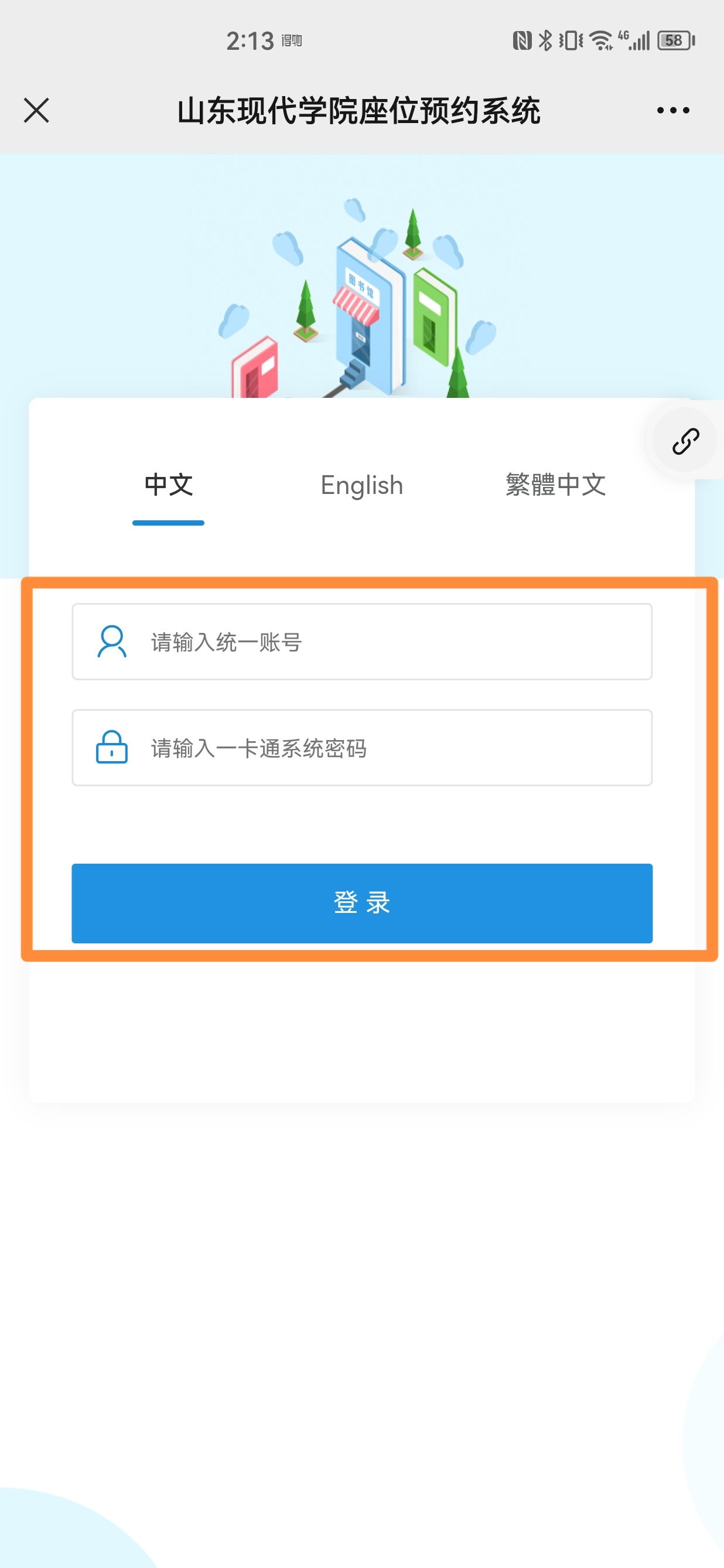 1.搜索并关注“山东现代学院图书馆”微信公众号