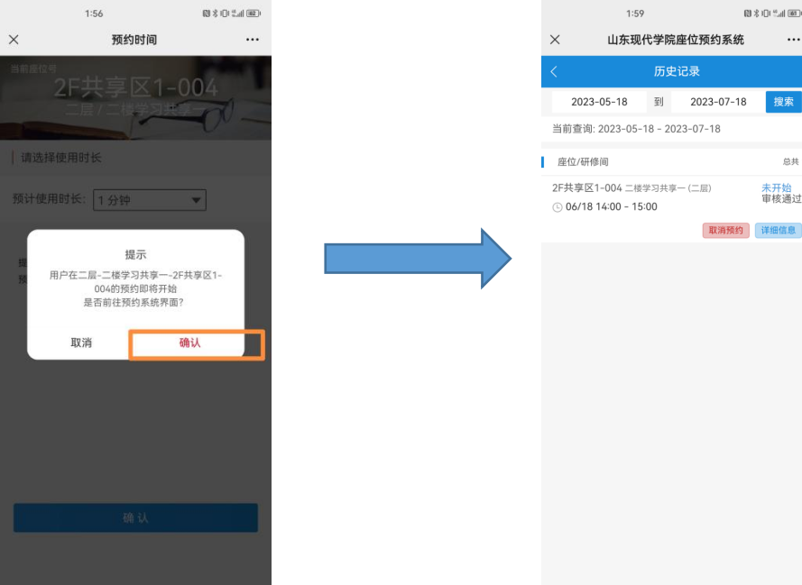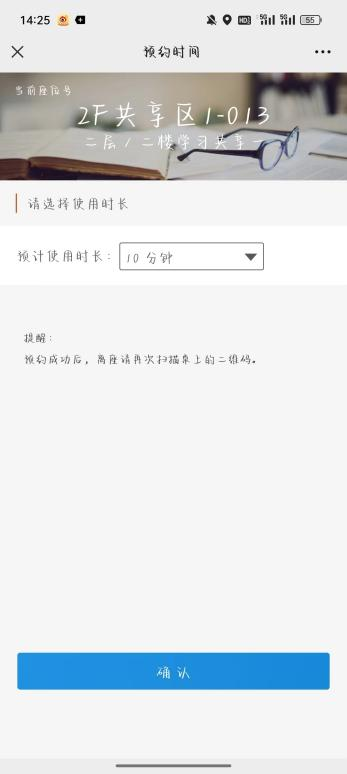 3.即可显示操作成功及个人预约时长