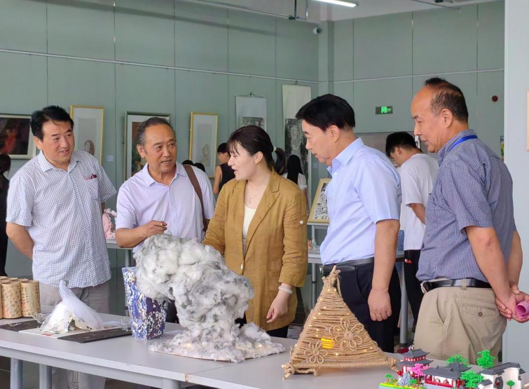 在人文学院讲解教师的引领下,与会领导、来宾和师生有序参观教学成果展作品。本次展出的每一件作品,都凝聚着现代师生的智慧和心血,充分展示了大家对生活的热爱和对艺术的追求。