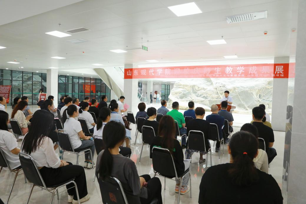 值此校庆30周年来临之际,为进一步丰富校园文化生活,营造浓郁的艺术创意氛围,展现师生精神风采,促进学校美育发展。由人文与管理学院主办,图书馆承办的“迎校庆师生教学成果展”于6月19日在图书馆一楼大厅举行开幕式,常务院长帅相志教授、院长助理房昌盛、有关部门负责人以及部分师生参加了开幕式,图书馆馆长徐兴余主持会议。