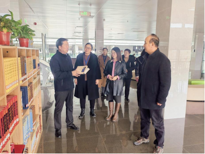朱居正馆长一行参观我校图书馆各楼层布局及数字媒体空间、多功能厅等场所。