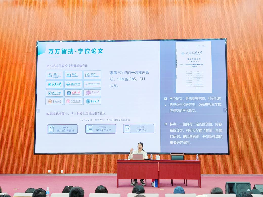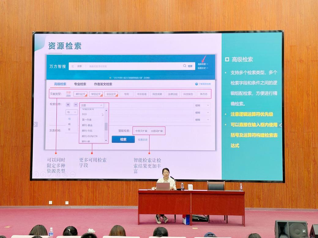 为进一步提升同学们的检索效率,精准获取所需信息,促进知识利用和创新,5月9日,我校图书馆特邀万方数据讲师郭展于图书馆一楼报告厅举办“提升信息素养,畅享数字资源”知识服务平台资源检索指导讲座。