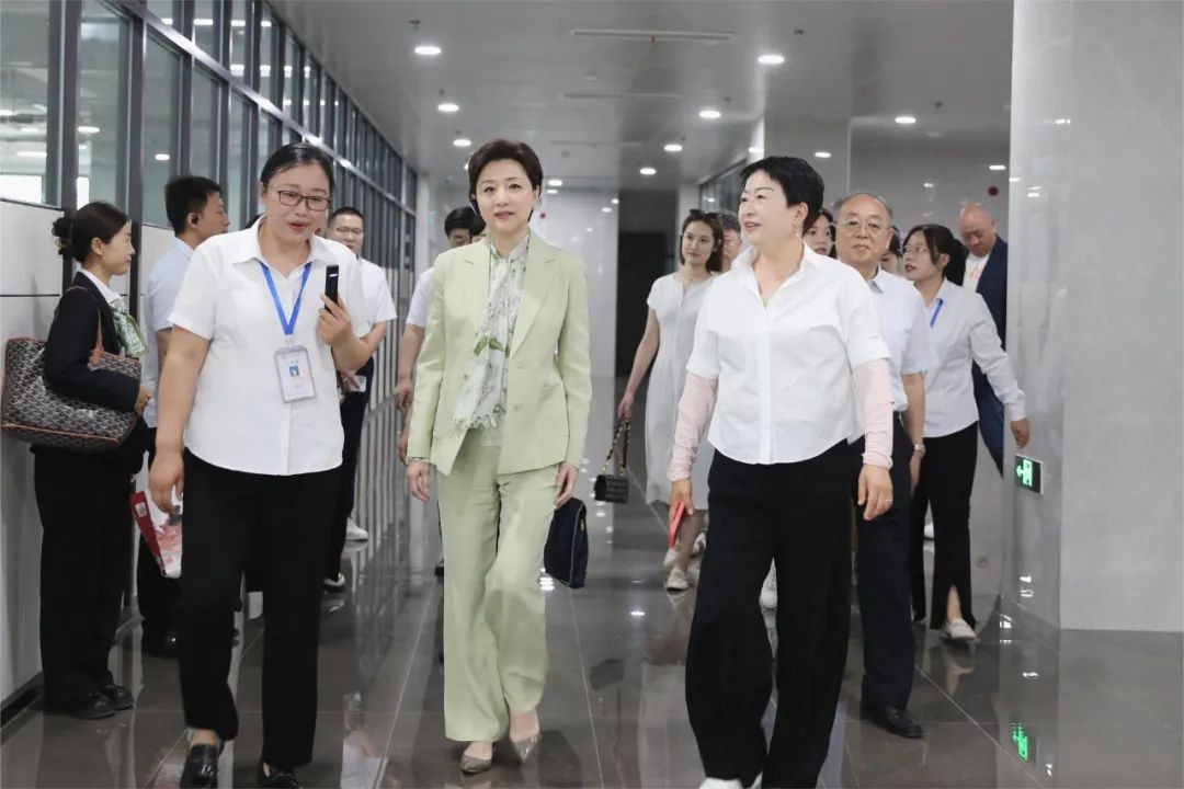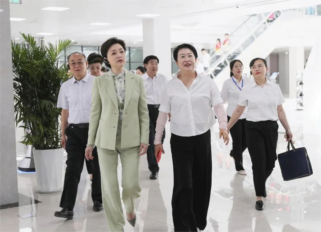 在参观过程中,杨澜老师与图书馆工作人员进行了深入的交流,对图书馆的资源建设、智慧化服务以及特色文化建设予以肯定。
