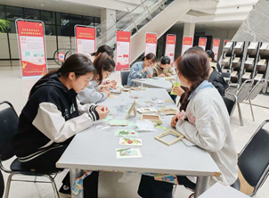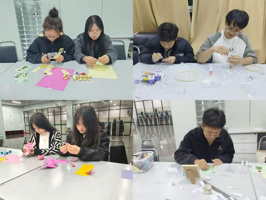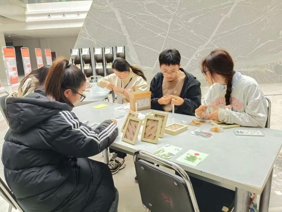 获取到材料的学生们发挥创意,将干花、贝壳等材料巧妙地组合在一起,制作出了一件件独具匠心的艺术品,现场氛围热烈,学生们享受着手工制作所带来的快乐与成就感。