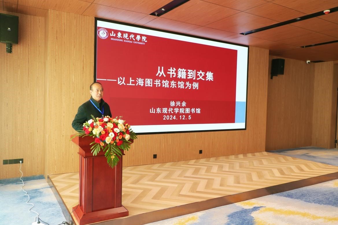 在专家讲坛主旨报告环节,来自重庆人文科技学院图书馆馆长杨晓琼以“携手奋进,合作共赢”为主题,分享了民办高校图书馆协作组的工作经验和成果,强调了协作与共赢的重要性。山东科技大学图书馆副馆长张福俊围绕“科技论文写作与课题研究”主题,为与会代表提供了宝贵的学术指导和建议。山东现代学院图书馆馆长徐兴余聚焦“从书籍到交集--以上海图书馆东馆为例”,着重阐述了5.0版本图书馆的设计理念,分析一个成功的案例。