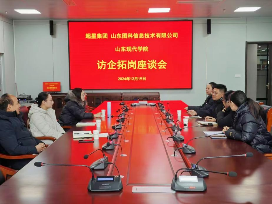 为加强我校与企业之间的联系,促进产教融合,进一步拓宽学生的实习与就业渠道,图书馆积极行动,主动搭建校企交流平台。12月19日上午,在图书馆315会议室召开“访企拓岗”座谈会。此次座谈会邀请了超星集团山东世纪读秀信息科技有限公司山东省区域经理任云竹、山东图科信息技术有限公司经理王蕾、图书馆馆长徐兴余、我校电子信息学院学管就业副院长赵鹏、图书馆办公室主任徐凤红以及图书馆部分老师共同参与,会议由图书馆馆长徐兴余主持。