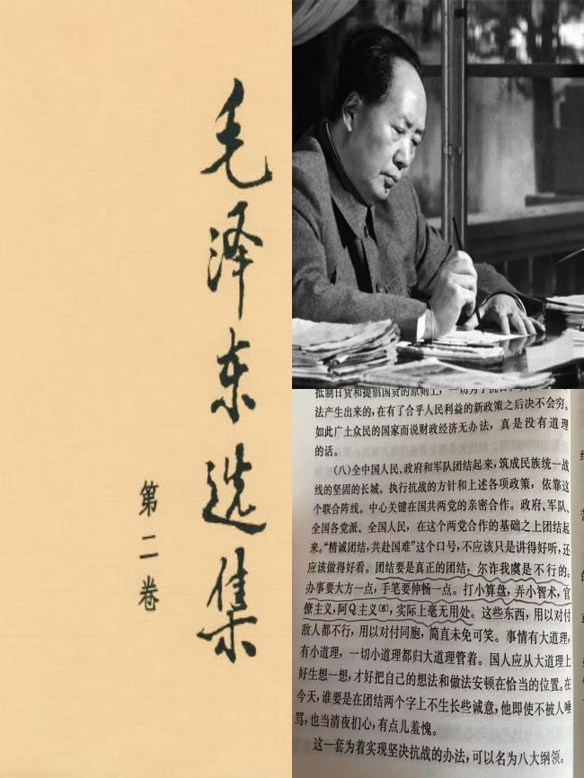 “团结要是真正的团结,尔诈我虞是不行的。办事要大方一点,手笔要伸畅一点。打小算盘,弄小智术,官僚主义,阿Q主义,实际上毫无用处。”