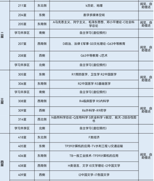 图书馆各楼层分布图