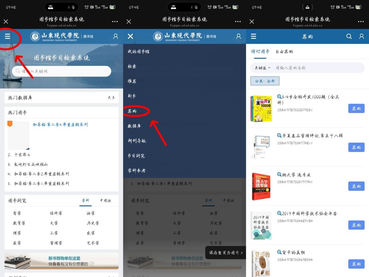 通过“山东现代学院图书馆”微信公众号“图书荐购”,或访问图书馆官网站(图书馆 (sdxd.edu.cn),)进入“读者服务”模块后点击“图书荐购”,均可进入图书馆图书荐购系统,提交图书推荐。