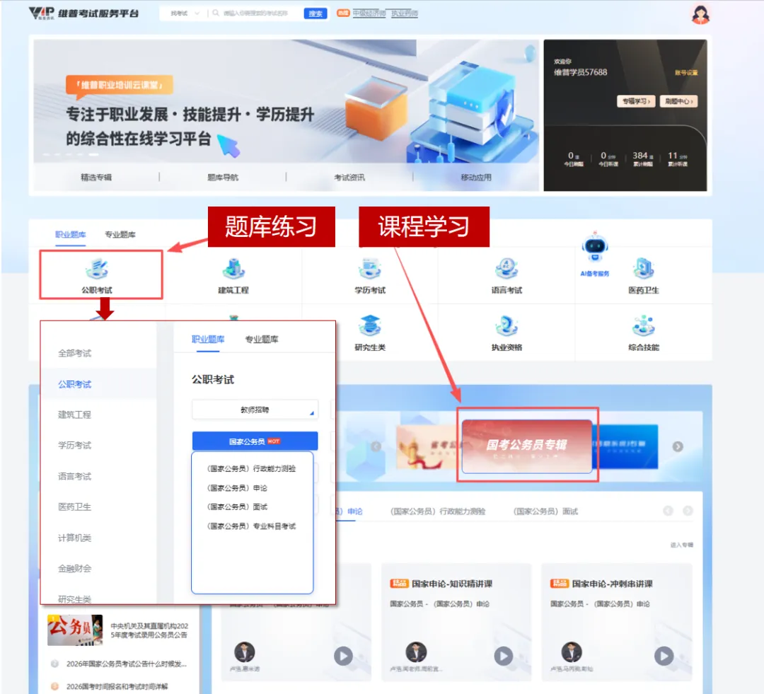完成报名后,就要开始终极冲刺啦!重要阶段,方向比努力更重要。维普考试服务平台(vers.cqvip.com)——公职考试· 国家公务员集视频课程+真题试卷+模拟试卷+智能批改+详尽解析于一体,助力备考!