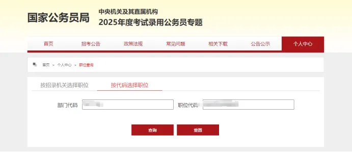 职位填报时需要填写部门代码和职位代码两项。