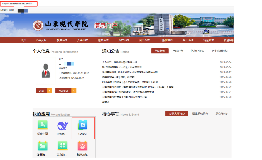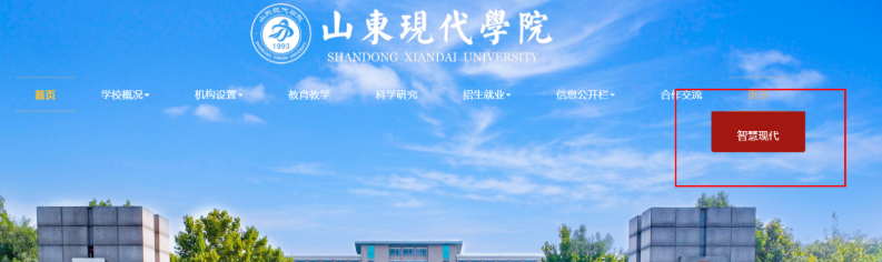 一 、打开浏览器,搜索山东现代学院官网,点击更多智慧现代进入统一身份认证平台。
