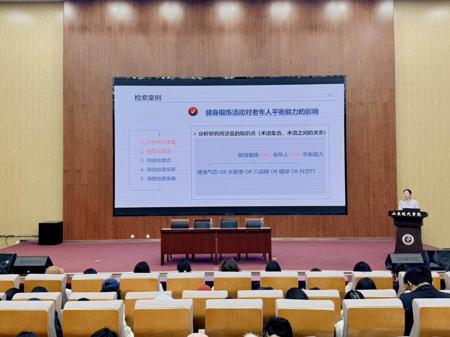 讲座最后,郭展老师结合“健身锻炼对老年人平衡能力的影响”等真实案例,拆解了检索词抽取、检索式构建、结果筛选与策略调整的完整流程,指导师生应对检索结果过多或过少等常见问题。