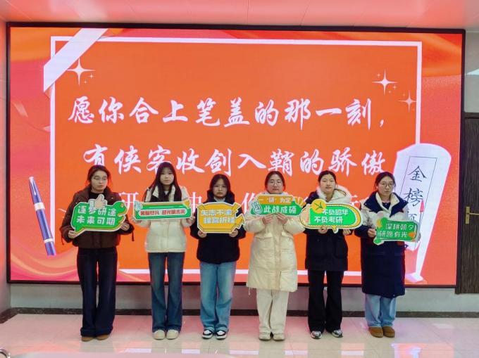打卡区内,同学们手持励志手牌定格自信瞬间,“心愿墙” 上贴满五彩便利贴,“一‘研’为定”“一战成‘硕’” 等字句承载着对未来的美好憧憬,让学子们真切感受到同行者的温暖。此外,抽奖、套圈、投壶等趣味小游戏,让同学们暂别紧张学习,在轻松互动中释放压力、增进交流,让看似孤独的备考路变得热闹而有温度。
