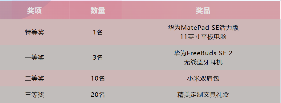 4.各竞赛单元均设立特等奖、一等奖、二等奖、三等奖,奖品总数超过1000份。