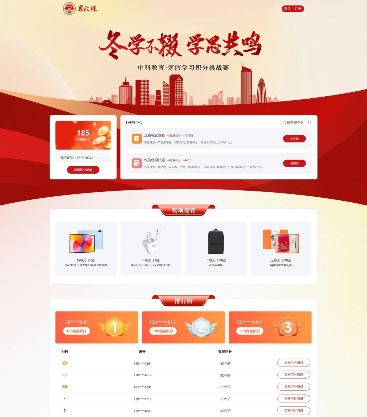 参赛者可通过“寒假学习积分挑战赛”活动页面查询各竞赛单元的具体奖项数量与奖品清单。