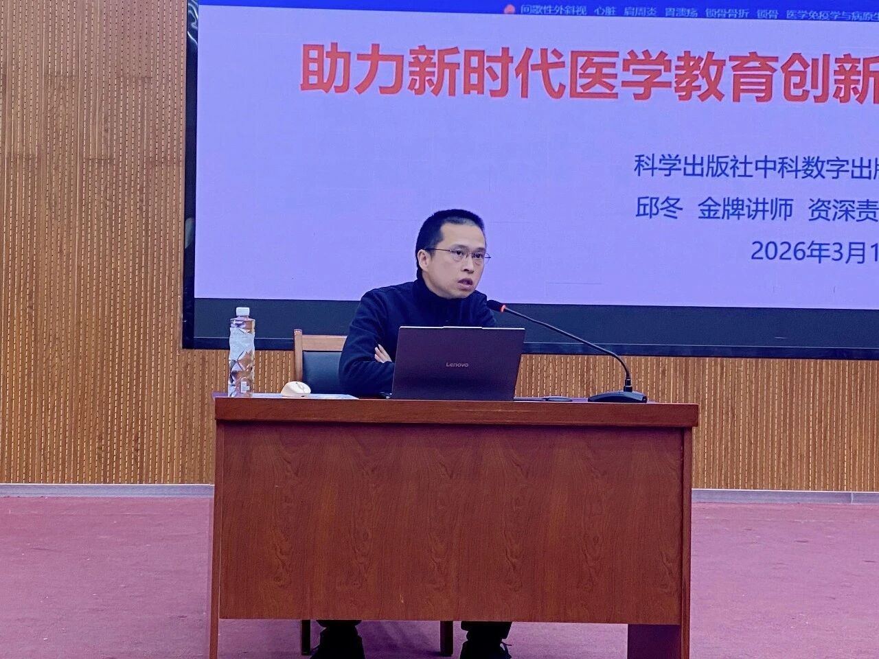 讲座伊始,邱冬老师首先从资源研发背景切入,详细介绍了科学出版社与中科数媒的发展历程与核心使命。作为隶属于中国科学院的综合性科技出版 “国家队”,科学出版社深耕科技出版领域,在美、日、欧等国家和地区设立分支机构,全程见证并记录了新中国科技发展的辉煌历程。中科数媒则依托科学出版社的优质出版资源,以科技与知识服务创新为核心,聚焦医学教育数字化发展需求,构建了覆盖临床、护理、康复、影像、中医等多专业的 “一体化” 人才培养资源路径,为医学教育高质量发展提供坚实支撑。