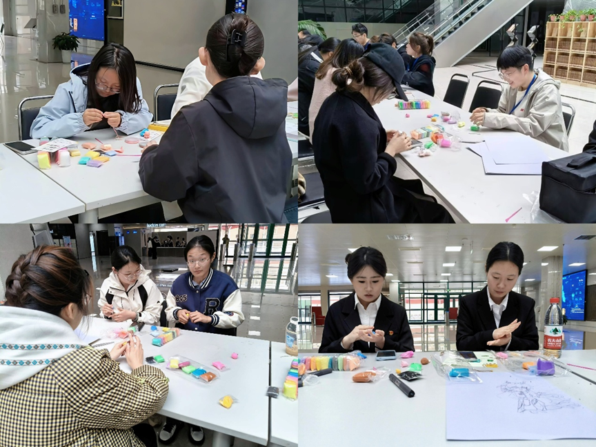 凭借闯关获得的物资,师生们开启了创意满满的手工创作之旅。“铃链心语,手工拾光”环节里,大家手持粗绳、细绳、小串珠等材料,发挥奇思妙想,将春日的美好寓意融入手链设计,或简约清新或精致灵动,每一件手作都独具匠心。“塑造自己的春天”环节中,彩色超轻黏土、颜料、彩笔等材料成为大家描绘春日的载体,师生们揉、捏、压、画,将春日的繁花、草木、暖阳化作一幅幅生动的泥土立体画,用双手塑造出心中独有的春日盛景。所有手工作品完成后,师生们均可到指定区域拍照留念,作品可免费带走,让春日美好定格为专属回忆。